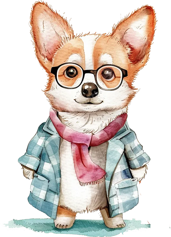 Cute Corgi Dog with Glasses & Plaid Shirt DTF Transfer