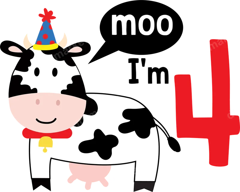 Cute Cow 4th Birthday DTF Transfer | Ready to Press Farm Animal Design