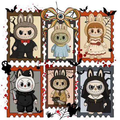 Cute Creepy Horror Bunny Characters DTF Transfer Stamp Set