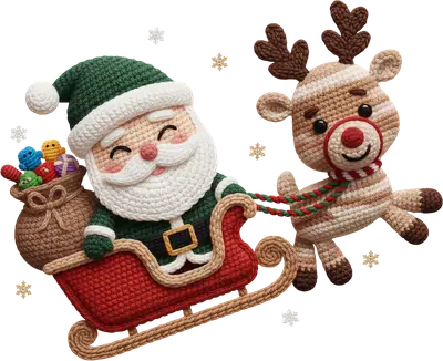 Cute Crochet Santa & Reindeer Sleigh Christmas DTF Transfer