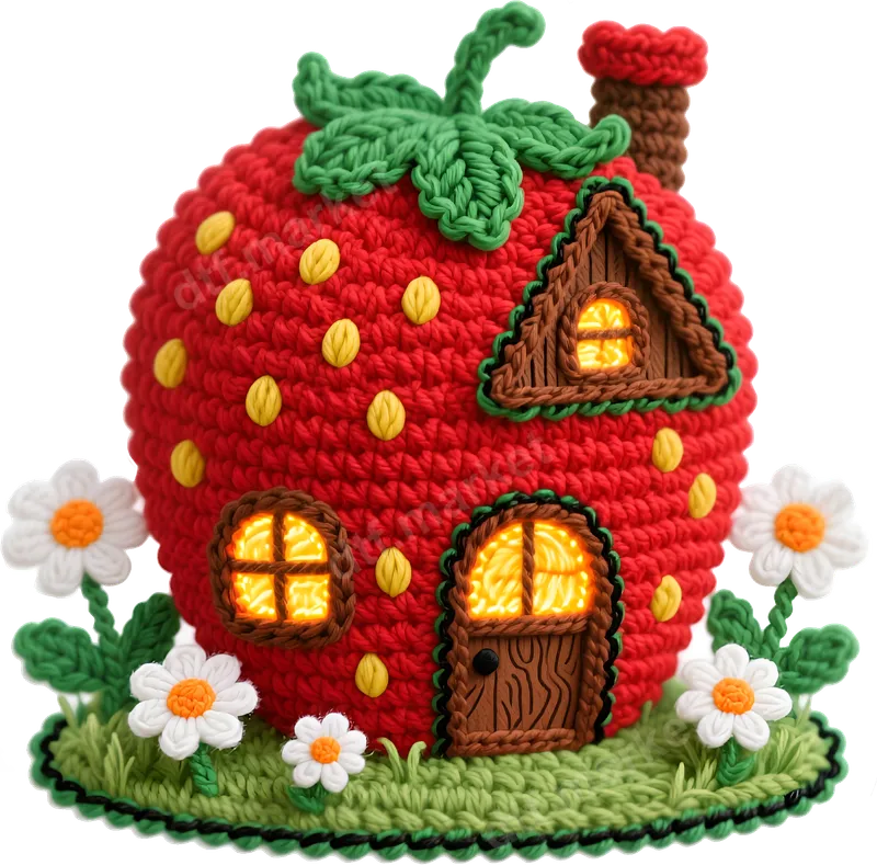 Cute Crochet Strawberry House DTF Transfer Design