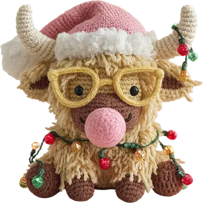 Cute Crocheted Highland Cow Christmas DTF Transfer