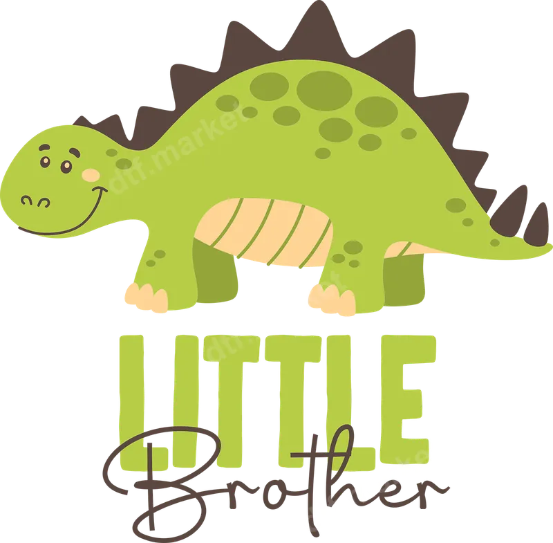 See allThis adorable DTF transfer features a charming green cartoon dinosaur with a friendly smile and playful spots, positioned above the words 'LITTLE Brother.' 'LITTLE' is in a bold, chunky green font, while 'Brother' is a delicate, flowing brown script, creating a warm, inviting look. This high-quality design is ready to press, making it simple to add a personalized touch to any garment or accessory. Perfect for welcoming a new addition to the family, this 'Little Brother' heat transfer is ideal for baby shower gifts, gender reveals, or creating adorable matching outfits for siblings. It’s a wonderful choice for parents, grandparents, or anyone looking to celebrate the special bond of brotherhood. Use it to craft unique apparel for everyday wear, birthday parties, or memorable family photoshoots. Applying this vibrant iron on transfer is effortless and requires no weeding. Our direct to film transfers adhere beautifully to a wide range of fabrics, including cotton, polyester, and various blends. For best results, use a heat press at 300-325°F for 15 seconds with medium pressure, then cold peel the film. A household iron can also be used with careful application for smaller projects. Crafted with premium DTF film and inks, this t-shirt transfer offers exceptional durability and vivid colors that resist cracking, peeling, or fading with washing. The result is a professional, soft-to-the-touch finish that feels seamlessly integrated into the fabric, ensuring lasting quality for your custom apparel. Elevate your creations with this charming and long-lasting design.