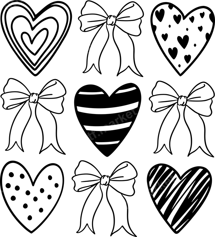 See allThis delightful DTF transfer features charming doodle hearts and elegant bows, perfect for adding sweetness to any garment. Each design captures a whimsical, hand-drawn aesthetic, with hearts showcasing various patterns like stripes, polka dots, and solid fills, alongside beautifully outlined bows. This ready to press design offers a versatile way to personalize apparel or accessories with symbols of love and affection. This versatile heat press design is ideal for small business owners creating custom apparel, DIY enthusiasts personalizing gifts, or anyone expressing love. Perfect for Valentine's Day, birthdays, anniversaries, or just appreciation, these cute iron on transfers elevate everyday wear. Create unique items for friends, family, or yourself on matching outfits or personalized tote bags. Applying this high-quality direct to film transfer is straightforward and hassle-free. Our heat press ready transfers work beautifully on cotton, polyester, and blends. For best results, use a heat press at 300-325°F for 15 seconds with medium pressure. No weeding is required, making your crafting quick and efficient. While a heat press is recommended for optimal adhesion, a household iron can be used for smaller projects. Crafted using premium DTF film and vibrant, durable inks, this t-shirt transfer ensures a professional finish. Expect brilliant colors that resist cracking, peeling, or fading after multiple washes. The soft-touch feel of our apparel transfers integrates smoothly with the fabric, providing exceptional comfort without a stiff or heavy texture. Enjoy professional-grade results that make your custom creations stand out.