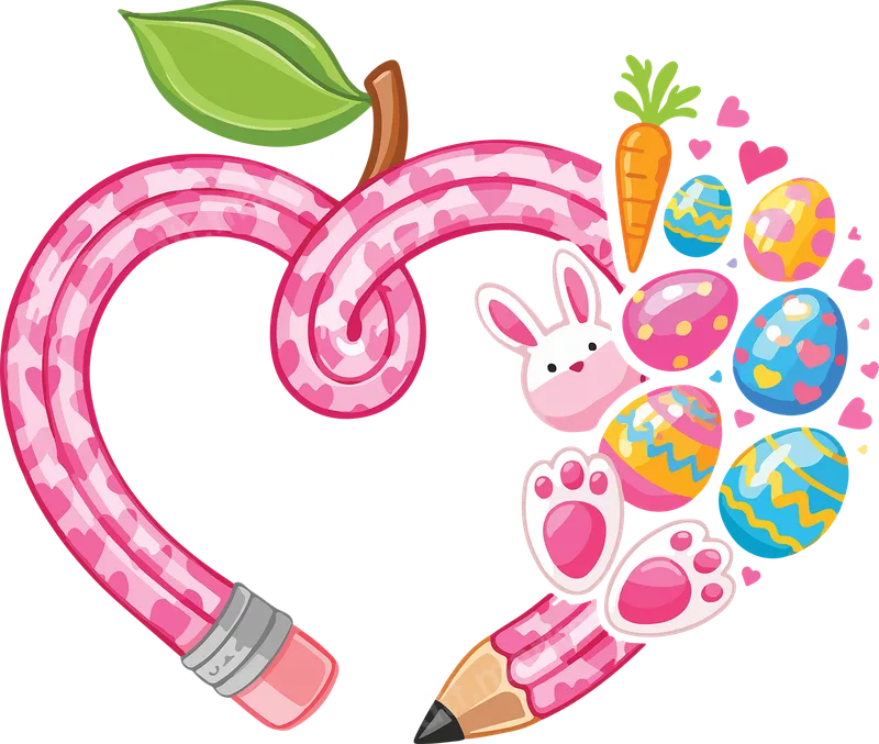 Cute Easter Pencil Heart Bunny Eggs DTF Transfer