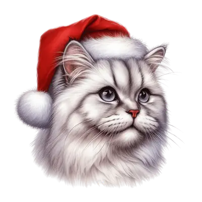 Cute Fluffy Cat Santa Hat DTF Transfer - Christmas Pet Lover Heat Press Design