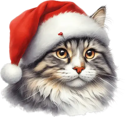Cute Fluffy Cat Santa Hat DTF Transfer | Christmas Ready to Press Design