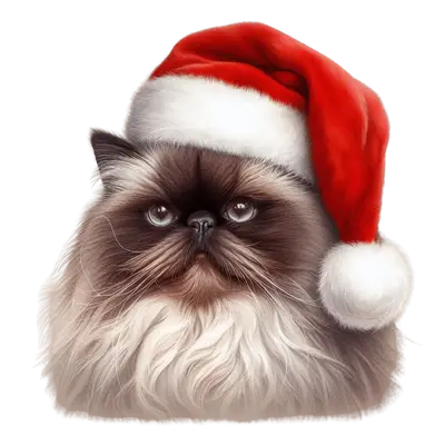 Cute Fluffy Cat Santa Hat DTF Transfer - Ready to Press Christmas Design