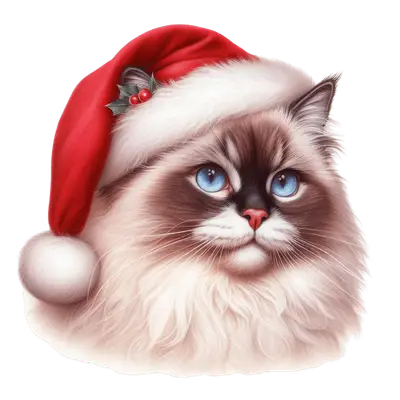Cute Fluffy Christmas Cat DTF Transfer - Santa Hat & Holly