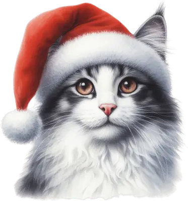 Cute Fluffy Santa Cat DTF Transfer | Christmas Kitten Heat Press Design