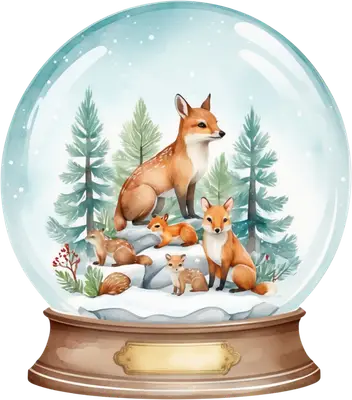 Cute Fox Family Snow Globe DTF Transfer - Winter Woodland Animals
