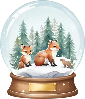 Cute Fox Family Snow Globe DTF Transfer - Winter Woodland Design