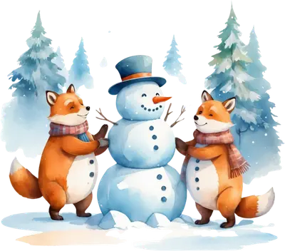 Cute Foxes Building Snowman Winter Wonderland DTF Transfer