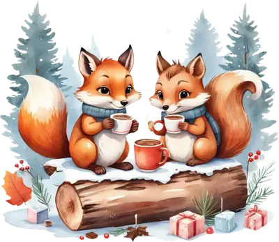 Cute Foxes Hot Cocoa Christmas DTF Transfer | Winter Animal Design
