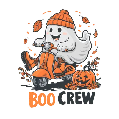 Cute Ghost 'Boo Crew' Scooter DTF Transfer - Halloween Ready to Press