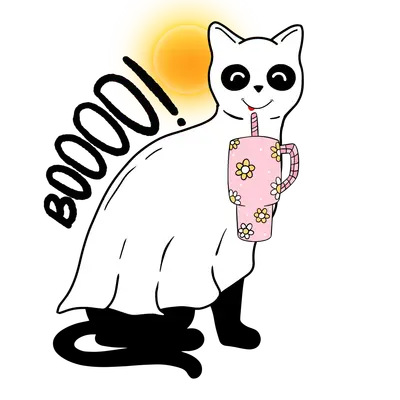 Cute Ghost Cat with Daisy Tumbler "BOOOO!" DTF Transfer