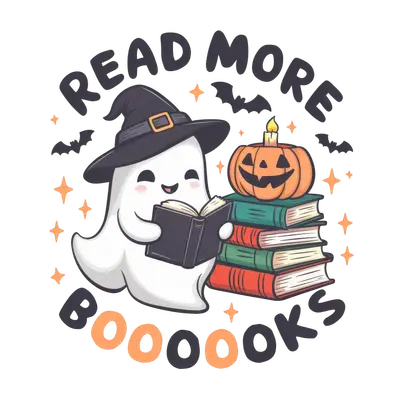 Cute Ghost Reading Books DTF Transfer | Read More Booooks Halloween Design