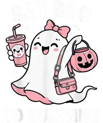 Cute Ghost Say Boo to Bullying DTF Transfer - Kawaii Halloween