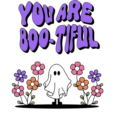 Cute Ghost "You Are Boo-Tiful" DTF Transfer | Retro Halloween Flowers