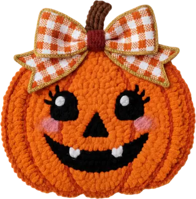 Cute Gingham Bow Pumpkin DTF Transfer | Adorable Jack-O'-Lantern Design