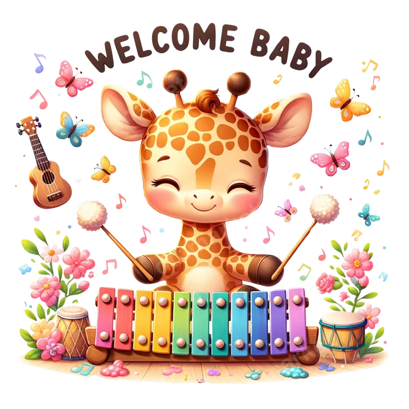 Cute Giraffe Welcome Baby DTF Transfer | Musical Xylophone Design