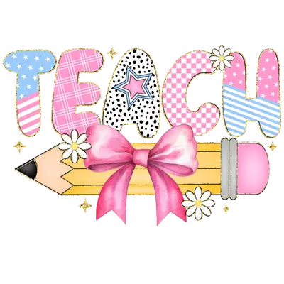 Cute Glitter TEACH Pencil DTF Transfer with Pink Bow