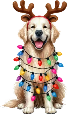 Cute Golden Retriever Christmas Lights DTF Transfer