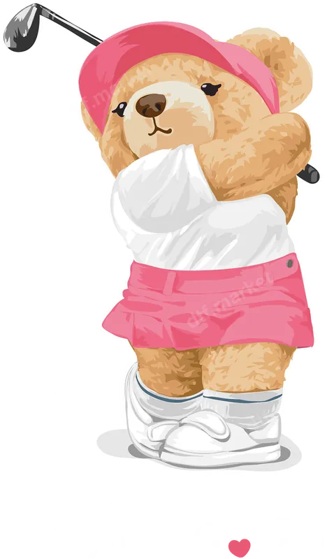 See allThis charming DTF transfer features an irresistibly cute teddy bear ready to hit the links, mid-swing with a golf club. Dressed in a stylish pink visor, white top, and a flirty pink skirt, this design exudes a playful and sporty vibe, perfect for anyone who loves golf with a touch of sweetness. Our ready to press transfer brings vibrant colors and crisp details to life on any garment. Ideal for golf enthusiasts, women golfers, junior players, or anyone who appreciates a unique and adorable design. This heat press transfer makes a fantastic gift for Mother's Day, birthdays, golf tournaments, or as a fun way to show off your love for the game on casual wear. Create custom apparel for golf outings, team events, or just for everyday smiles. Applying this iron on transfer is incredibly simple. Designed for compatibility with cotton, polyester, and all fabric blends, it's versatile and easy to use. Just apply with a heat press at 300-325°F for 15 seconds with medium pressure, then cold peel for a flawless finish. No complex weeding or layering like traditional vinyl transfer designs; this ready to press transfer saves you time and effort. You'll love the professional quality of our DTF transfers. This apparel transfer boasts incredibly vibrant colors that pop, superior crack resistance, and a soft-hand feel that integrates beautifully with the fabric. Each design is printed on premium DTF film with a strong, durable adhesive, ensuring your custom shirt design lasts wash after wash. Elevate your wardrobe with a durable and eye-catching golf-themed graphic.