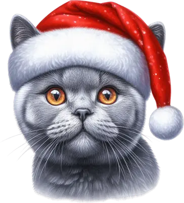Cute Grey Cat Santa Hat Christmas DTF Transfer