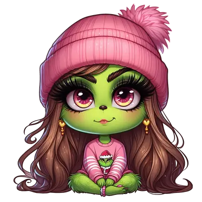 Cute Grinchy Girl Pink Beanie Christmas DTF Transfer | Ready to Press Design