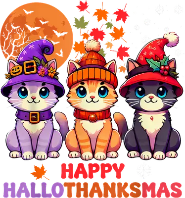 Cute Hallothanksmas Cats DTF Transfer - Halloween Thanksgiving Christmas