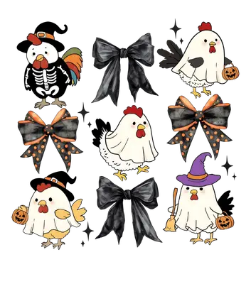 See allGet ready for a spooky-cute Halloween with our adorable Chicken DTF transfer set! This charming collection features whimsical ghost chickens, a playful skeleton rooster, and festive black and orange bows. Each ready to press design brings a unique blend of cute and eerie, perfect for celebrating all things Halloween. From tiny jack-o'-lanterns to a witchy fowl, this versatile set makes a fantastic statement for any festive project. This fun heat transfer design adds charming Halloween spirit to your wardrobe or merchandise. Ideal for small boutique owners, crafters, or families wanting matching festive shirts. Chicken enthusiasts and farm lovers will adore these whimsical designs. Perfect for Halloween parties, fall festivals, or autumn vibes, these iron on transfer graphics are sure to bring smiles. Create custom items for school events or trick-or-treat gatherings. Applying this heat press transfer is incredibly easy. Our DTF transfers work beautifully on cotton, polyester, and blends. For best results, use a heat press at 300-325°F for 15 seconds. A household iron can also be used. No weeding needed – just peel and press! These custom t-shirt transfers are perfect for hoodies, tote bags, pillow covers, and aprons. For lasting durability, wash garments inside out and tumble dry low. Each ready to press transfer boasts vibrant, full-color printing with exceptional fine detail. The design is crack-resistant and soft to the touch, ensuring no heavy vinyl feel. We use only premium DTF film with a strong adhesive backing, guaranteeing professional results every time you apply your direct to film transfer. Create durable, eye-catching apparel and accessories that stand out with the superior quality of our DTF prints.