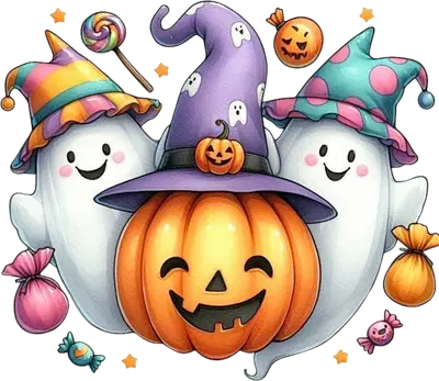 Cute Halloween Ghost Pumpkin Witch Hat DTF Transfer