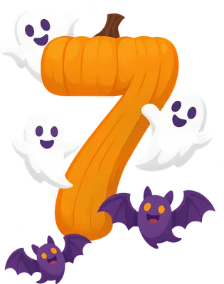 Cute Halloween Number 7 DTF Transfer with Ghosts, Bats & Pumpkin