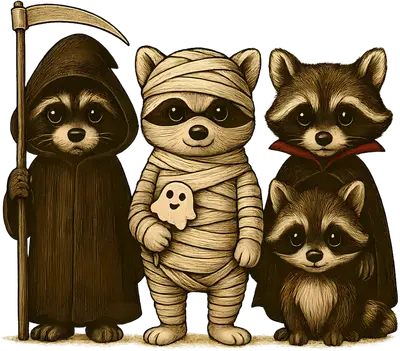 Cute Halloween Raccoons DTF Transfer | Grim Reaper, Mummy, Vampire Squad