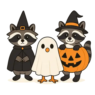 Cute Halloween Raccoons & Ghost Bird DTF Transfer Design