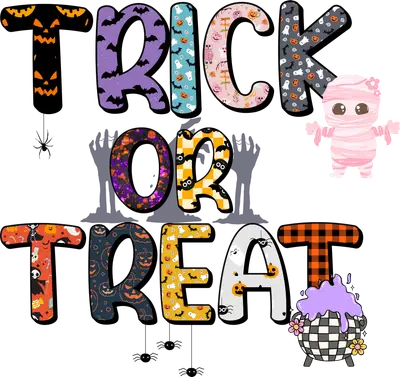 Cute Halloween Trick or Treat DTF Transfer with Mummy & Spiders
