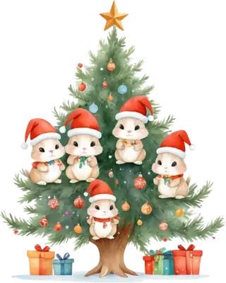Cute Hamsters Christmas Tree DTF Transfer | Festive Animal Holiday Design