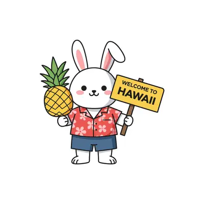 Cute Hawaiian Bunny DTF Transfer with Pineapple & Welcome Sign