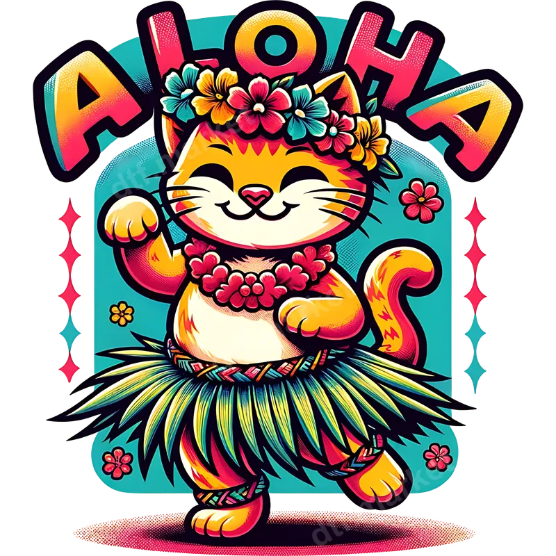 Cute Hawaiian Hula Cat Aloha DTF Transfer for T-Shirts