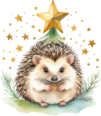 Cute Hedgehog Christmas Tree Star DTF Transfer | Holiday Animal Ready to Press