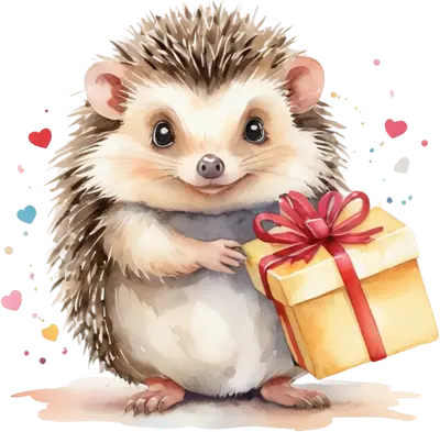Cute Hedgehog Holding Gift Watercolor DTF Transfer - Ready to Press
