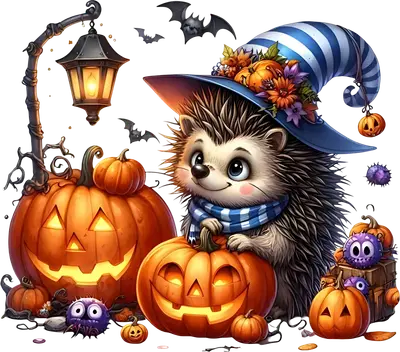 Cute Hedgehog Witch with Jack-o'-Lanterns Halloween DTF Transfer
