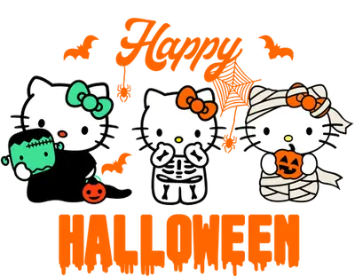 Cute Hello Kitty Halloween DTF Transfer - Frankenstein, Mummy, Skeleton
