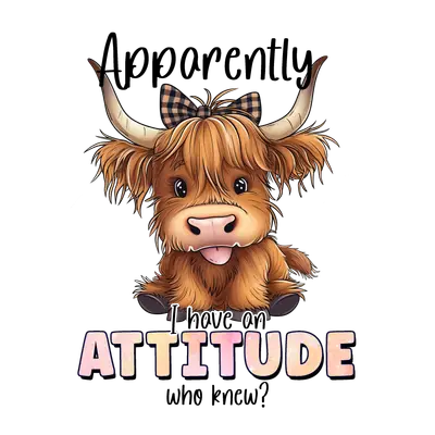 See allUnleash your playful side with this adorable, fluffy Highland cow calf, complete with its shaggy orange-brown hair, tiny horns, and a charming plaid bow. With a mischievous tongue sticking out, this little cow is framed by the sassy declaration: "Apparently I have an ATTITUDE who knew?" The word "ATTITUDE" pops with a delightful pastel watercolor effect, adding to its whimsical appeal. This vibrant DTF transfer is ready to press, bringing instant personality and humor to any garment. This funny heat transfer design is perfect for anyone who loves farm animals, has a sassy spirit, or enjoys a good chuckle. It makes a fantastic gift for moms, teenagers, crafters, small boutique owners, or anyone looking to create unique apparel with a touch of rural charm. Use this iron on transfer to personalize everyday wear, celebrate farm life, or simply make a statement at country fairs and gatherings. It’s an ideal way to express a fun-loving attitude. Our versatile heat press transfer applies beautifully to cotton, polyester, cotton-poly blends, and even nylon fabrics. Achieve professional-quality results with ease using a heat press (recommended 300-325°F for 15 seconds with medium pressure) or a household iron. Forget the hassle of weeding—this design is a simple peel-and-press application, perfect for custom t-shirts, hoodies, sweatshirts, tote bags, baby onesies, and aprons. For best care, wash garments inside out and tumble dry low to ensure lasting durability. Each ready to press transfer ensures vibrant, full-color printing with exceptional fine detail. It’s crack-resistant and boasts a soft feel, completely unlike the heavy, stiff texture of traditional vinyl transfers. Every direct to film transfer is meticulously printed on premium DTF film, featuring a strong adhesive backing for consistently professional and durable results, ensuring your projects look fantastic wear after wear.