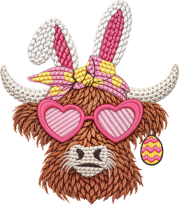 See allStep into spring with this charming DTF transfer featuring an irresistibly cute Highland Cow. This design showcases the fluffy bovine adorned with playful knitted bunny ears, trendy pink heart-shaped sunglasses, a cheerful bandana, and a whimsical Easter egg earring, all rendered in a delightful textured stitch style. It's a truly unique and ready to press design that captures the joyous spirit of the season with a touch of farm animal charm. This adorable Highland Cow bunny design is perfect for anyone looking to add a touch of cuteness to their Easter celebrations or everyday spring wardrobe. Ideal for crafters, DIY enthusiasts, moms, grandmas, or anyone who loves animals, this design makes an excellent gift for birthdays, baby showers, or simply to brighten someone's day. Create custom apparel for family gatherings, springtime events, or unique holiday outfits. Applying this heat press ready design is a breeze! Our DTF transfers work beautifully on a wide variety of fabrics, including cotton, polyester, and their blends. Simply use a heat press at 300-325°F for 15 seconds with medium pressure. For smaller projects, a household iron can also be used with careful application. Best of all, there's no weeding required, saving you time and effort in your crafting projects. Experience superior quality with our professional-grade DTF transfers. This premium apparel transfer boasts vibrant, crisp colors and intricate details that won't crack or fade, even after multiple washes. The soft-to-touch finish ensures maximum comfort, making it perfect for custom t-shirt transfers, hoodies, and more. Elevate your creations with a durable and beautiful iron on transfer that truly stands out.