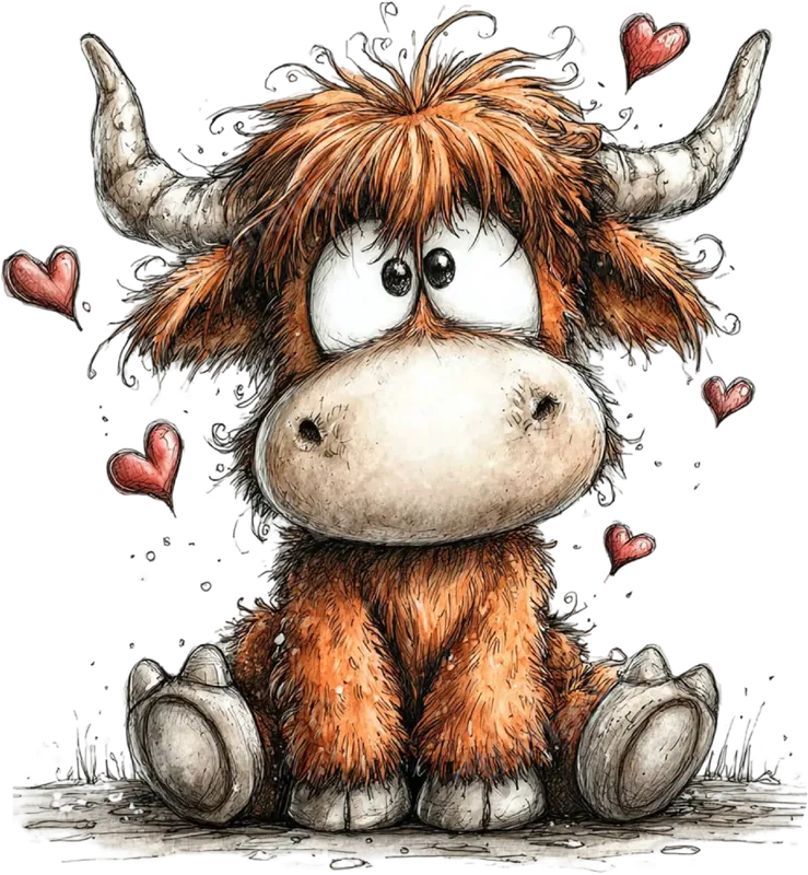 Cute Highland Cow with Hearts DTF Transfer | Ready to Press Design