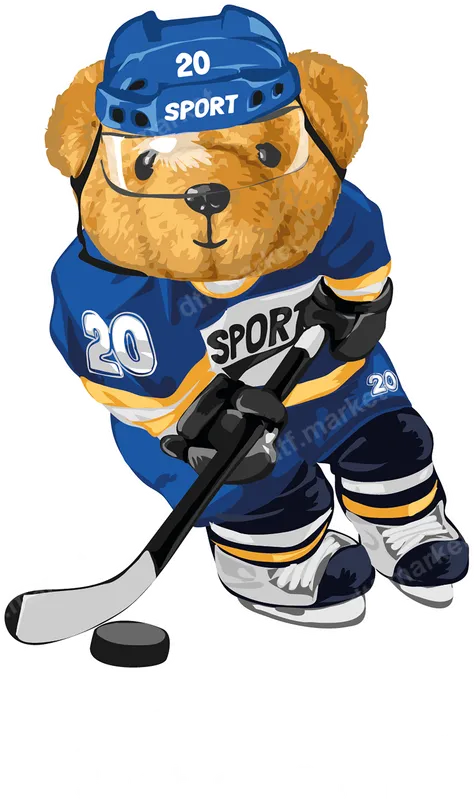 Cute Hockey Bear DTF Transfer | Ready to Press Sports Design