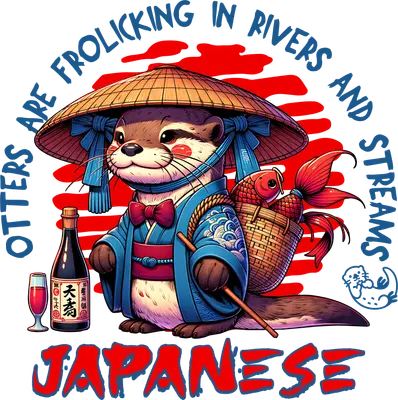 Cute Japanese Otter Kimono DTF Transfer with Sake & Fish
