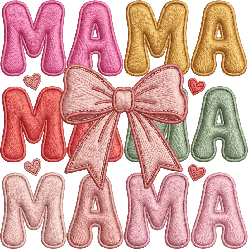 Cute Mama Embroidered Patch Style DTF Transfer with Bow & Hearts